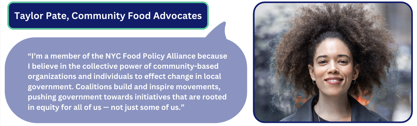Our partners are involved in so many ways. Some join our NYC Food Policy Alliance meetings, others join our coalitions and lead on policy development, and others attend our workshops and provide input as we grow. Meet a few of our partners below!