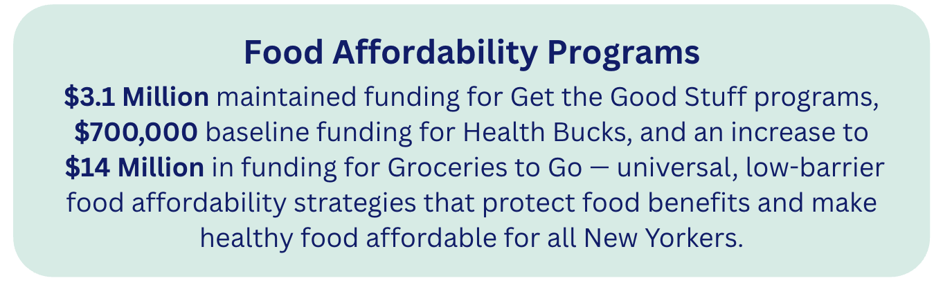 Amidst unprecedented federal cuts and changes to food security and nutrition assistance programs, we urge the city to include funding that will ensure New Yorkers can continue to feed their families while also ensuring the long-term resilience of the local food system. We specifically urge the Mayor & City Council to prioritize the following in the FY27 Budget:
